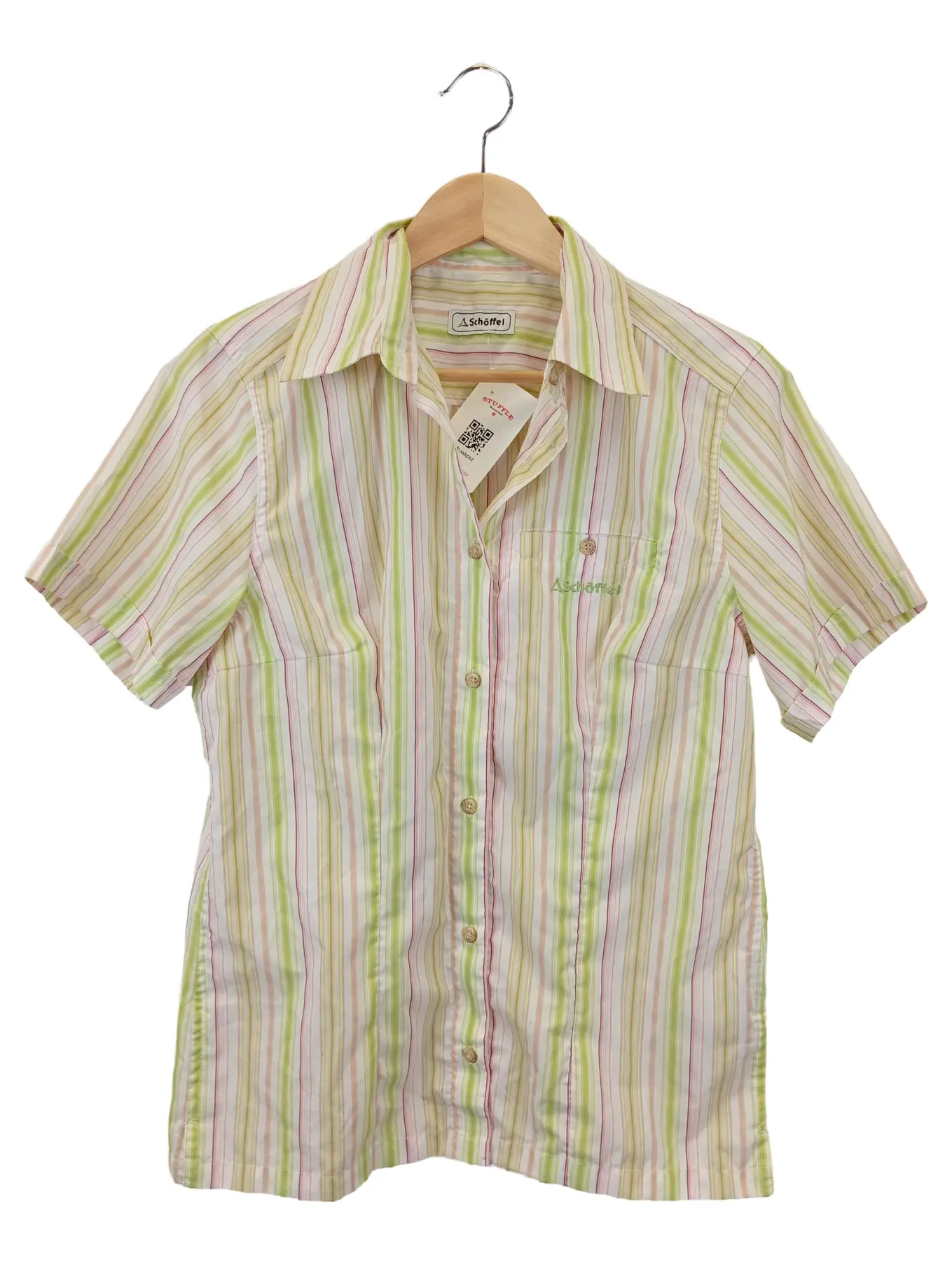 SCHÖFFEL Damen Bluse Gestreift Mehrfarbig Kurzarm Gr. 40/M Casual