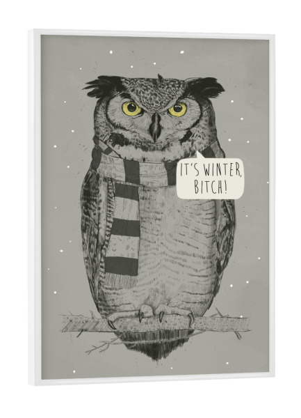 Poster mit weißem Rahmen "It ́s winter" artboxONE - Tiere,Schwarzweiß,Lustig - Eule,Winter,Its cold,Cold,Snow,Schnee,Kalt,Schal,Scarf,Owl