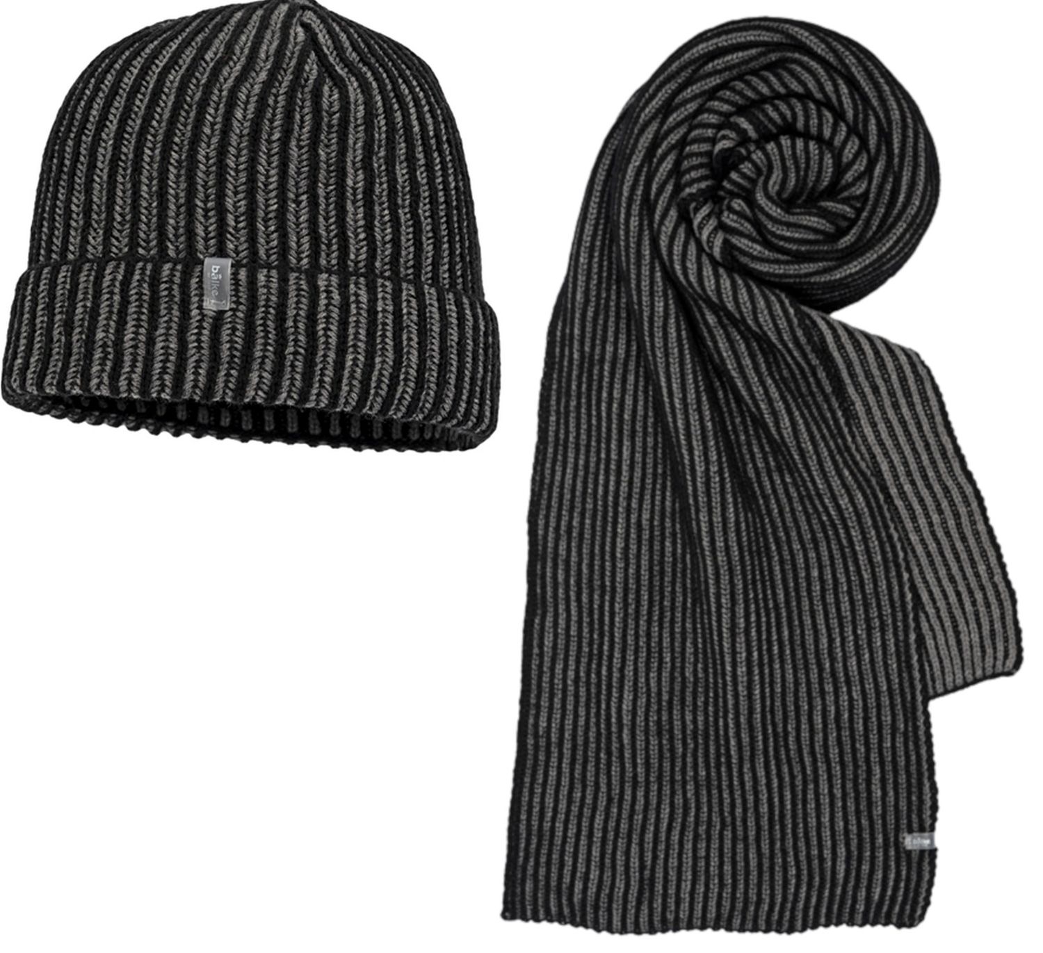 Alkato Uni Beanie Mütze und Schal Set Uni, Farbe: Rippstoff Anthrazit Meliert, Größe: Einheitsgröße