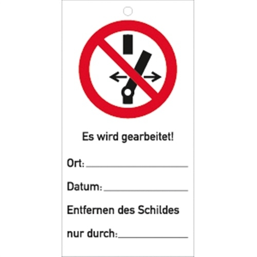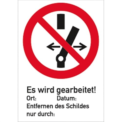 Schild Schalten verboten! Es wird gearbeitet ISO 7010,Kunststoff,76x147 mm ,10 Stück/VE