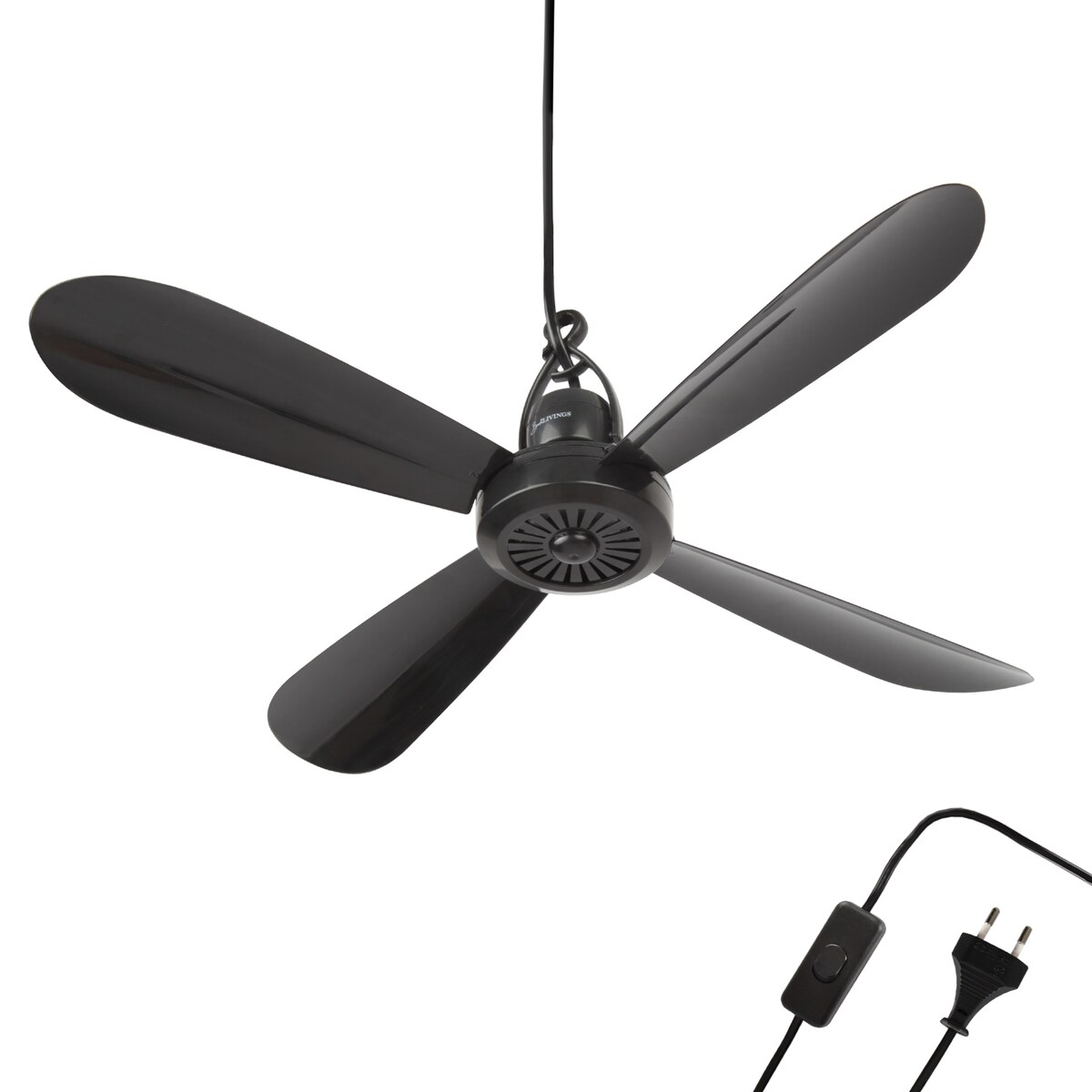 Mobiler Deckenventilator "Schwarz" ( 5m XXL Kabel ) mit Stecker und Schalter, 220V-240V / 5 Watt, Ø40 cm Decken Ventilator mit Aufhänger