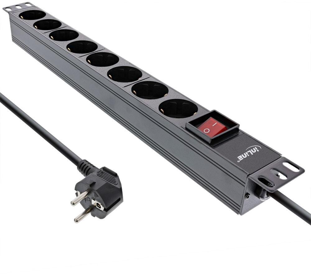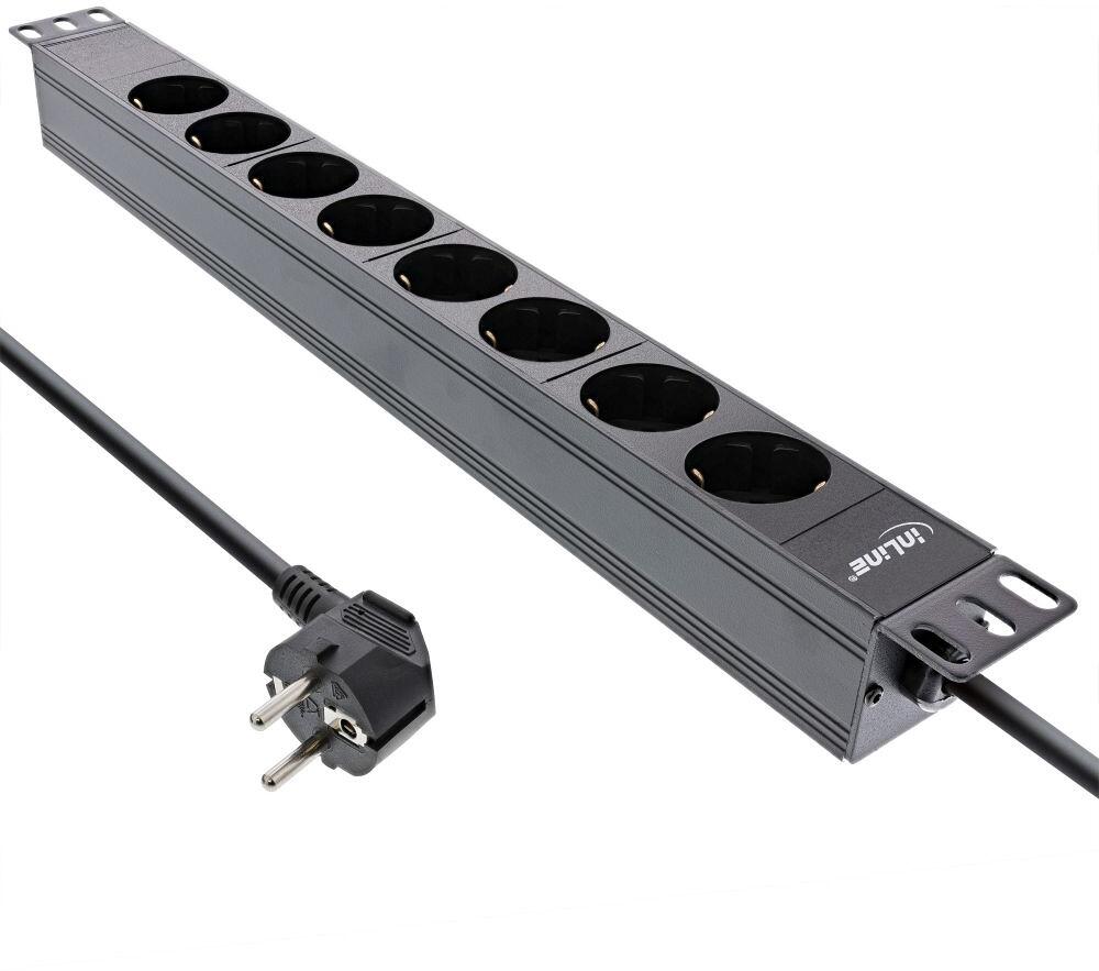 InLine 19" Steckdosenleiste, 8-fach Schutzkontakt, ohne Schalter, 2m, schwarz (16418I)