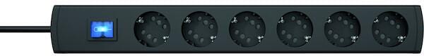 Helos Steckdosenleiste CLASSIC, 6-fach, schwarz, 1,5m, mit Schalter