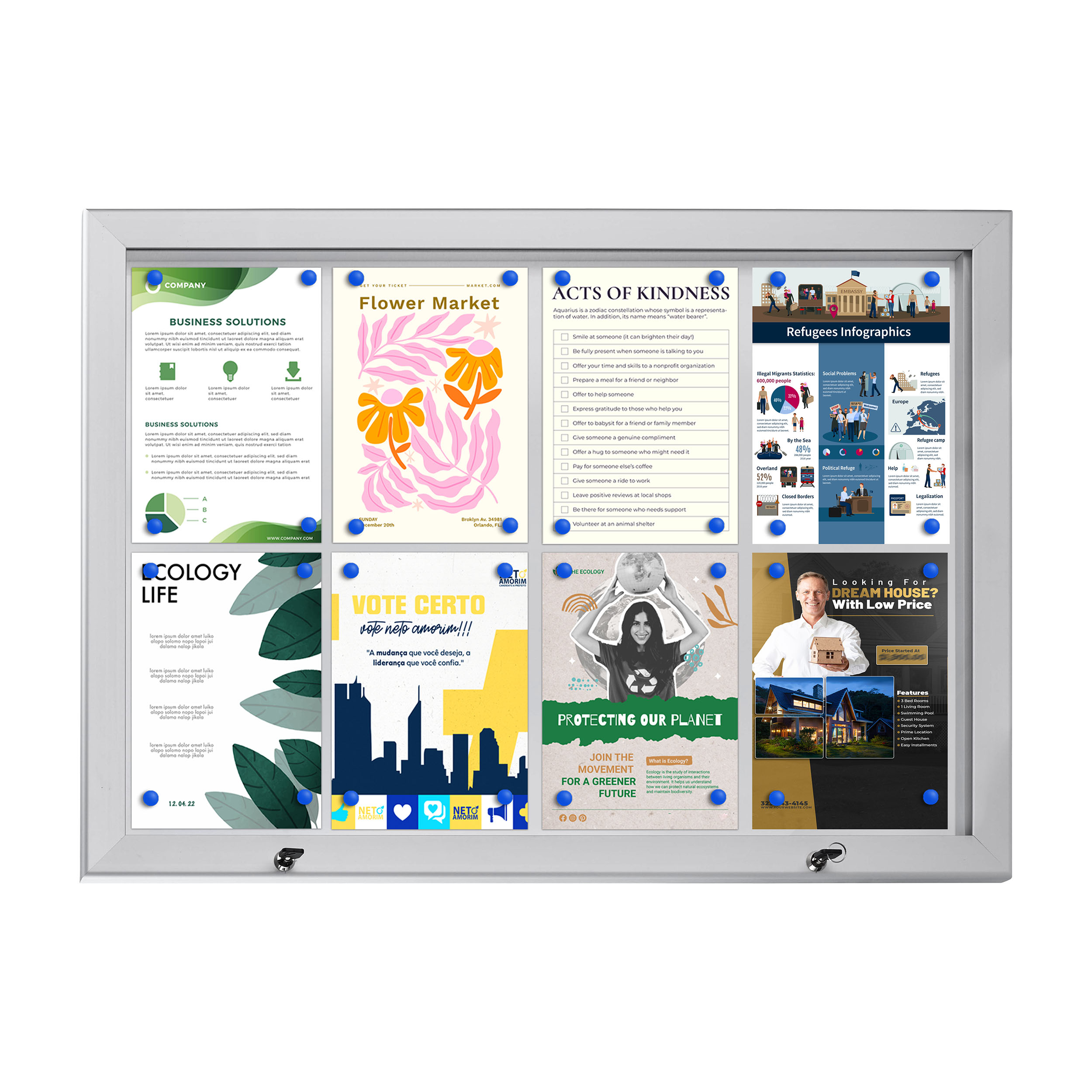 Showdown Schaukasten für Innen und Außen SCS - 8x DIN A4 - B1 - Aluminium - Silber