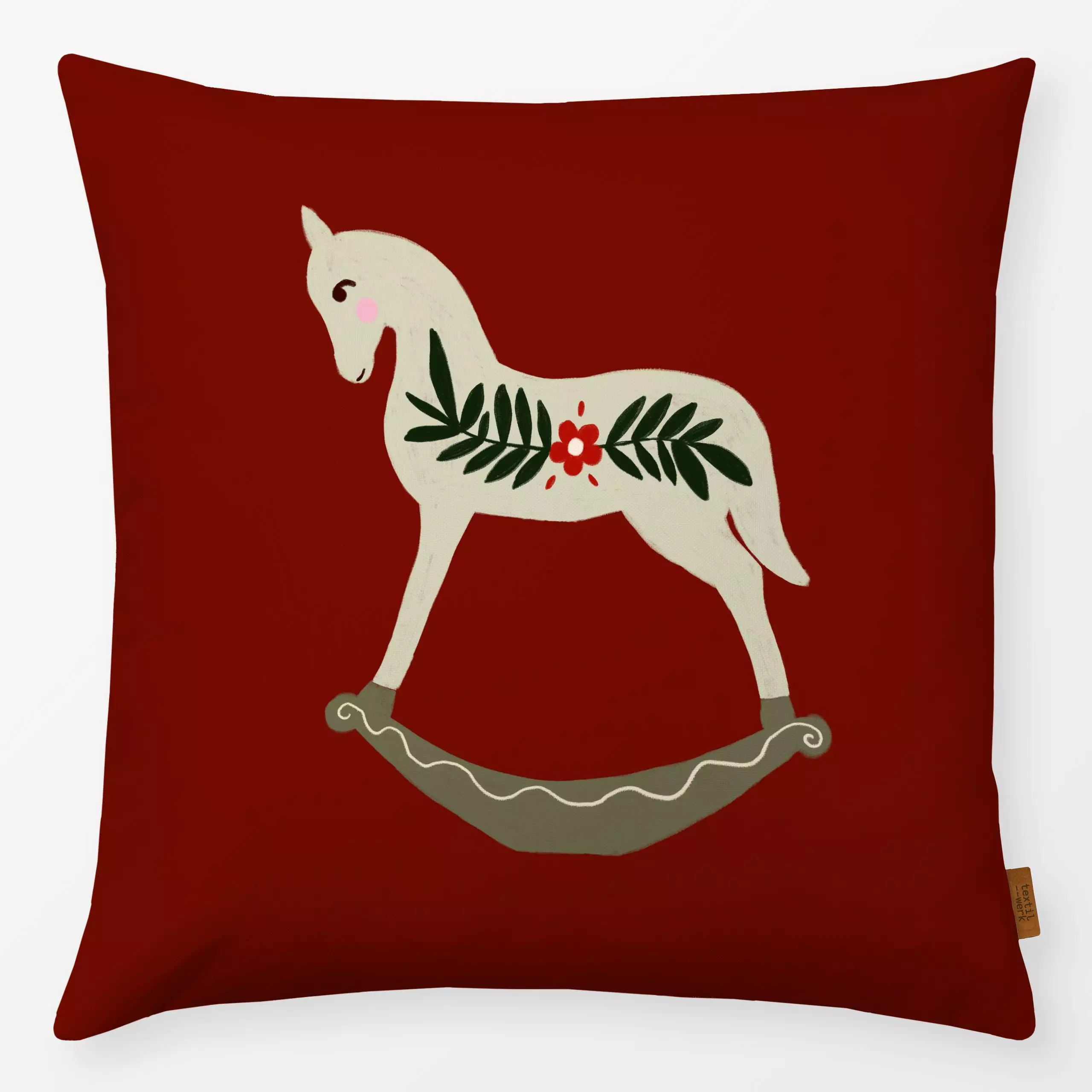 Kissen Schaukelpferd Rot - Weihnachten - von „Sophie Augustin Illustration"; Weihnachten, weihnachtlich, Weihnachtsdeko, tra...