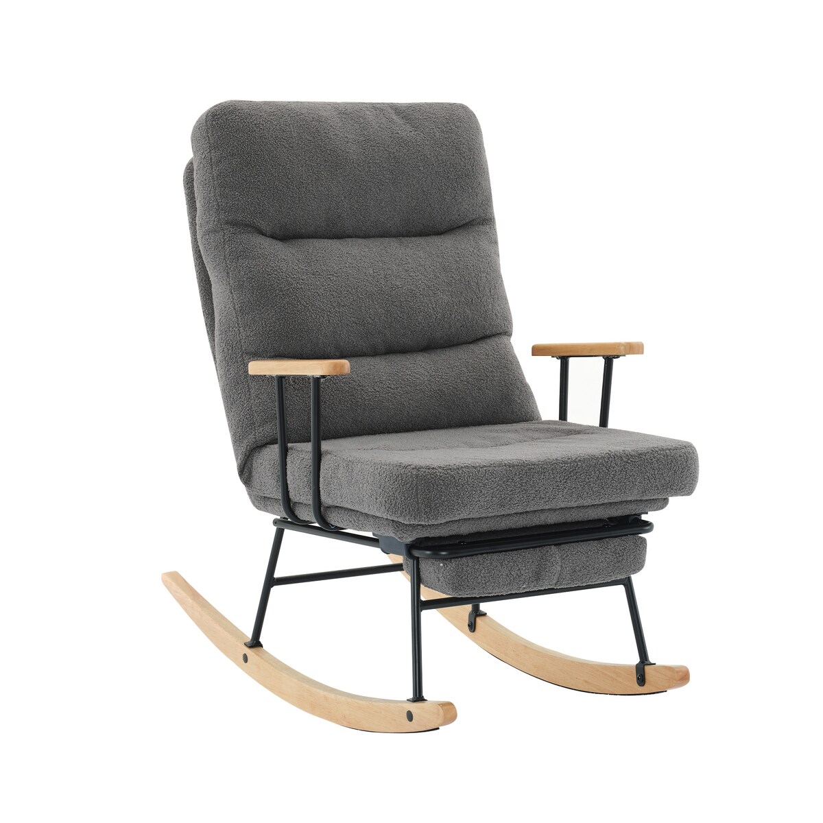 OKWISH Schaukelsessel Loungesessel 100x102x57 cm mit Schwerkraftverstellung und integrierter Fußstütze Teddy Fleece Bezug Grau