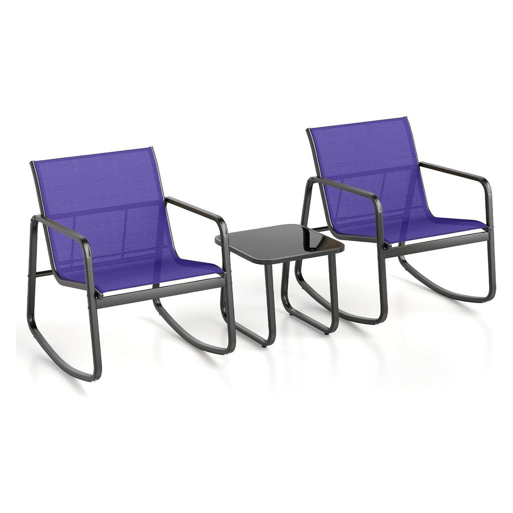 KOMFOTTEU 3 TLG. Balkonset, Bistro-Set mit 2 Schaukelstühle und Tisch, Garten Sitzgruppe aus Textilene-Stoff, Gartengarnitur Gartenmöbel Set für...