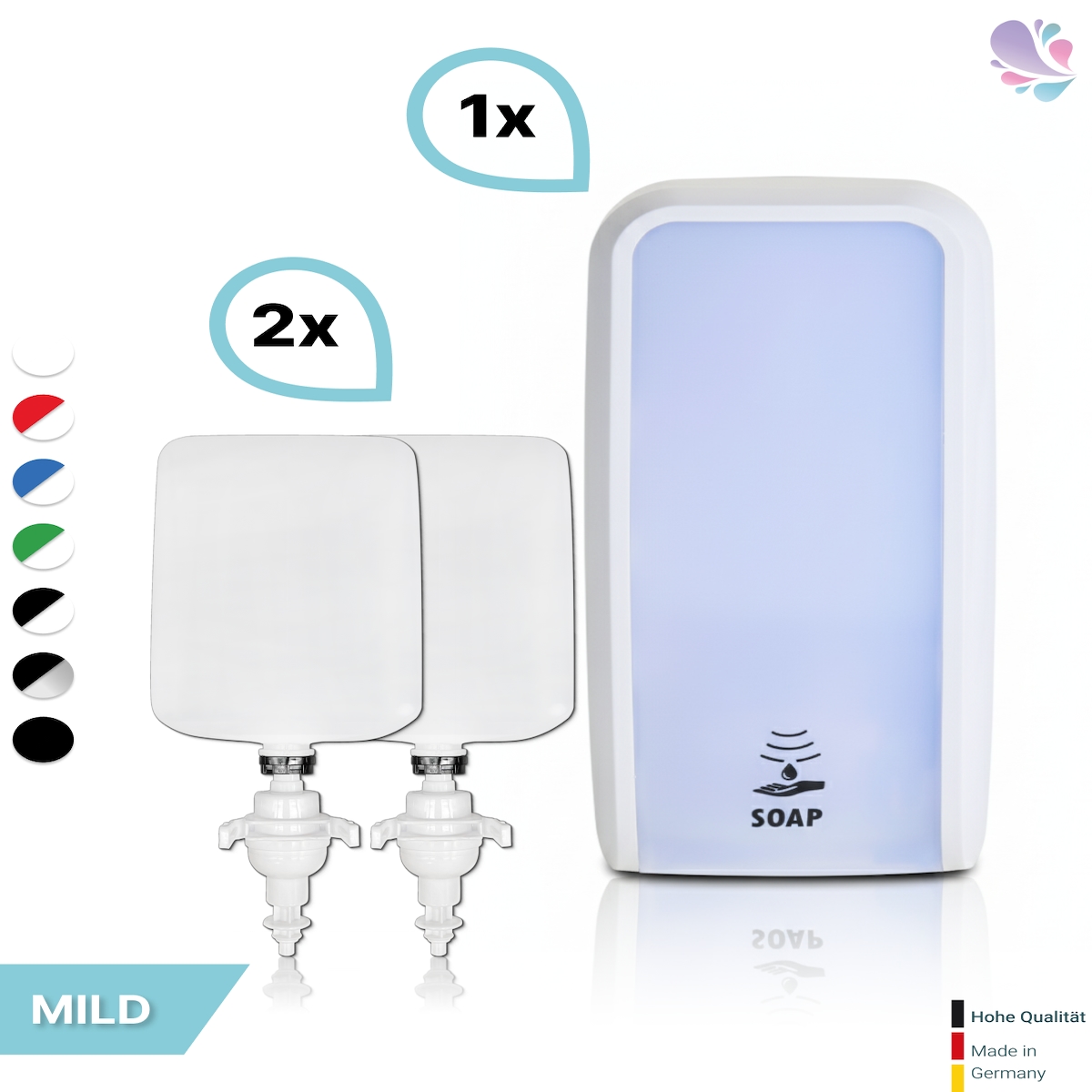 Blanc HYGIENIC SET: Schaumseifenspender SENSOR, berührungslos Blanc Cosmos versch. Farben+2x 1-Liter Schaumseife mild - PRODUKTSET : Farbe - Weiß