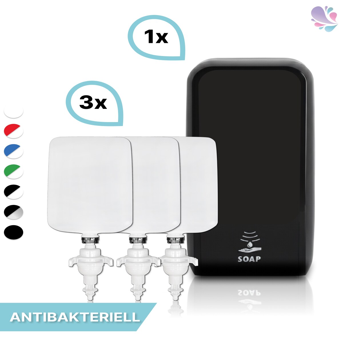SET: Schaumseifenspender SENSOR, berührungslos Blanc Cosmos versch. Farben+3x 1-Liter Schaumseife antibakteriell - PRODUKTSET : Farbe - Schwarz Fa...