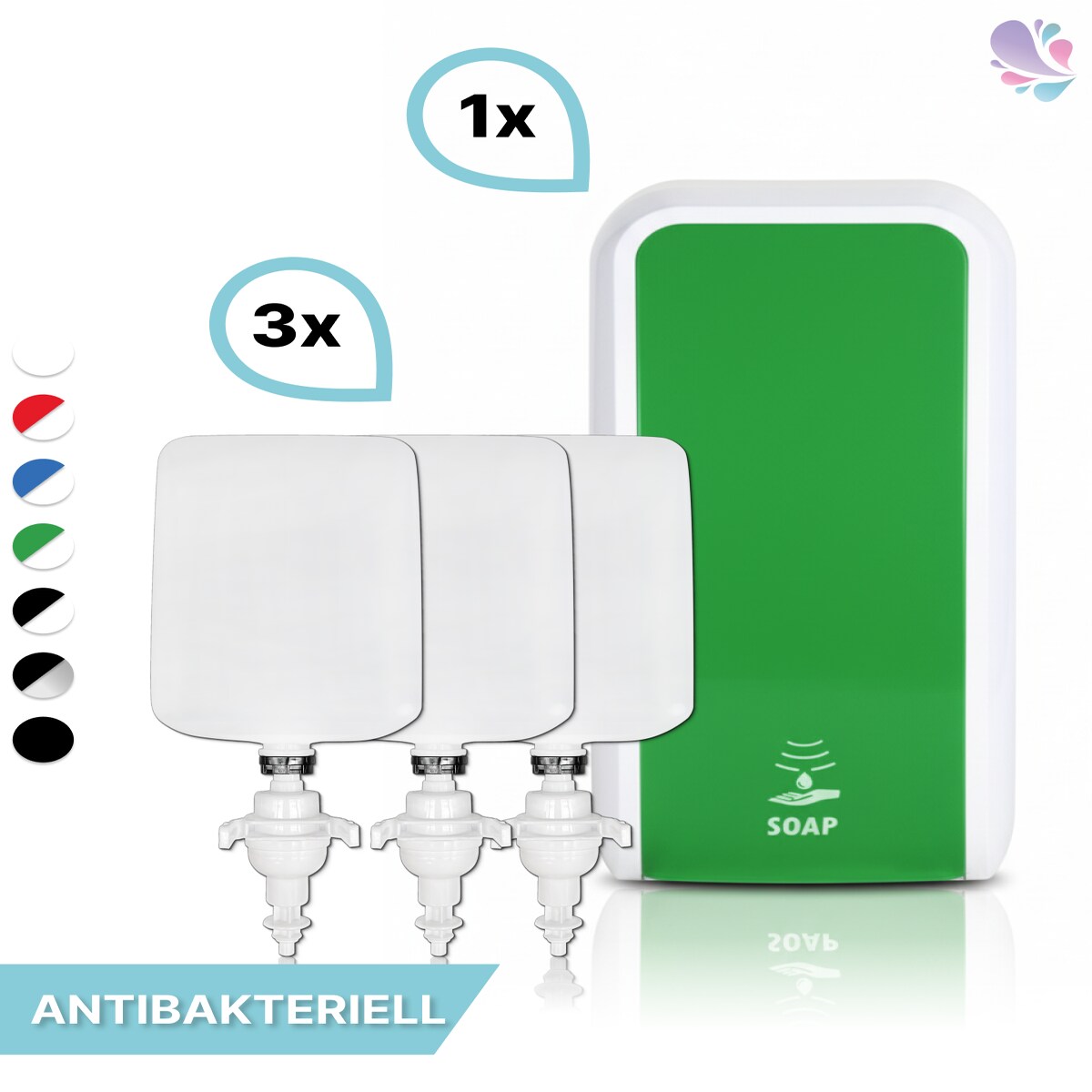 Blanc HYGIENIC SET: Schaumseifenspender SENSOR, berührungslos Blanc Cosmos versch. Farben+3x 1-Liter Schaumseife antibakteriell - PRODUKTSET : Farbe -