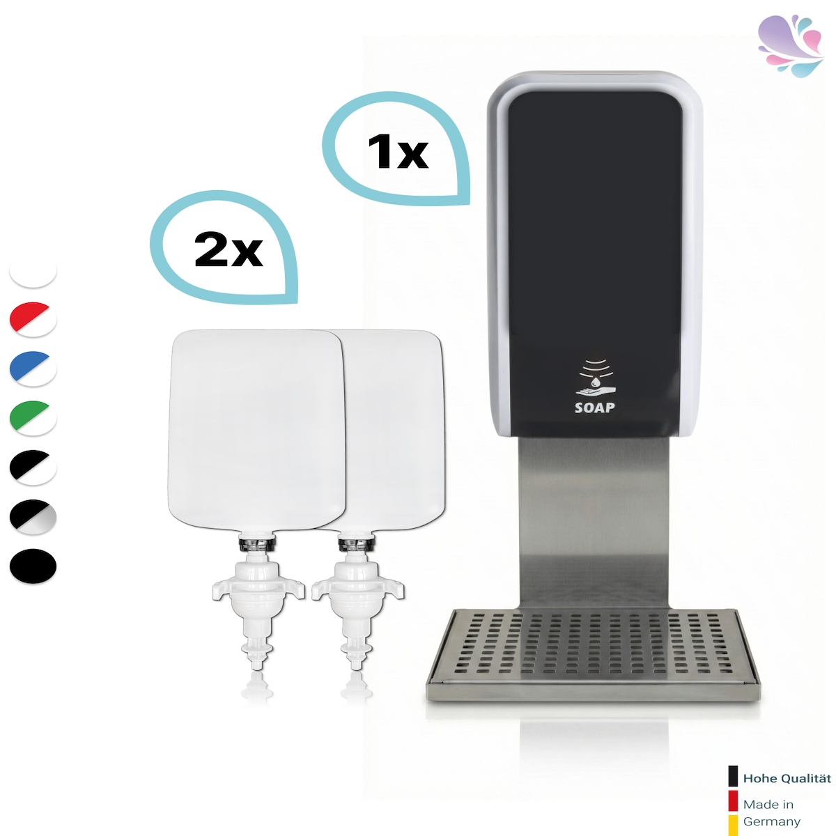 SET: Schaumseifenspender SENSOR Cosmos (berührungslos) +2x1L Schaumseife mild+ Edelstahlhalterung mit Auffangschale Wandmontage : Farbe - Schwarz ...
