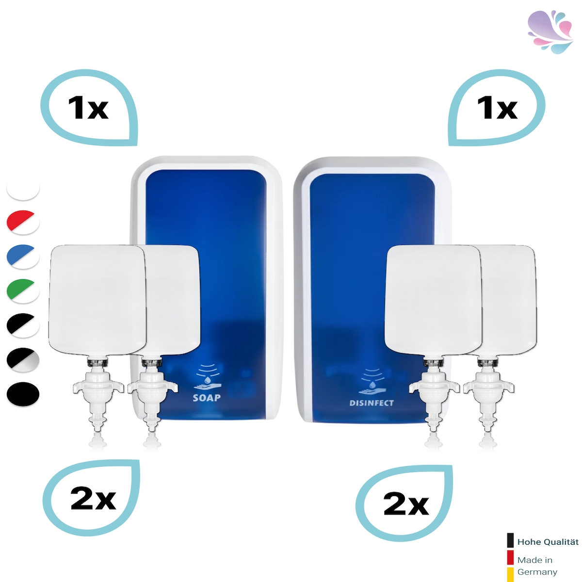 Blanc HYGIENIC KOMPLETT-SET HANDHYGIENE SENSOR: Desinfektionsspender SENSOR + 2 Kartuschen & Schaumseifenspender SENSOR + 2 Kartuschen