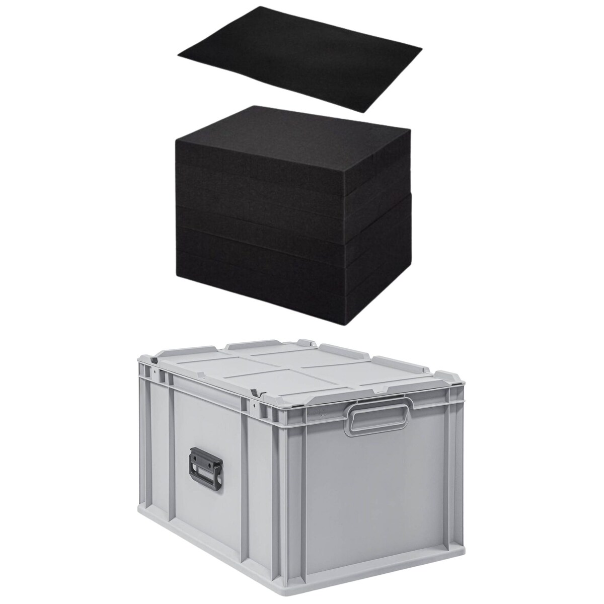 PROREGAL Set für NextGen Euroboxen | Rasterschaumstoff (Stanzung 1,5x1,5cm) + Schaumstoffeinlage | HxBxT 40,5x36x56cm