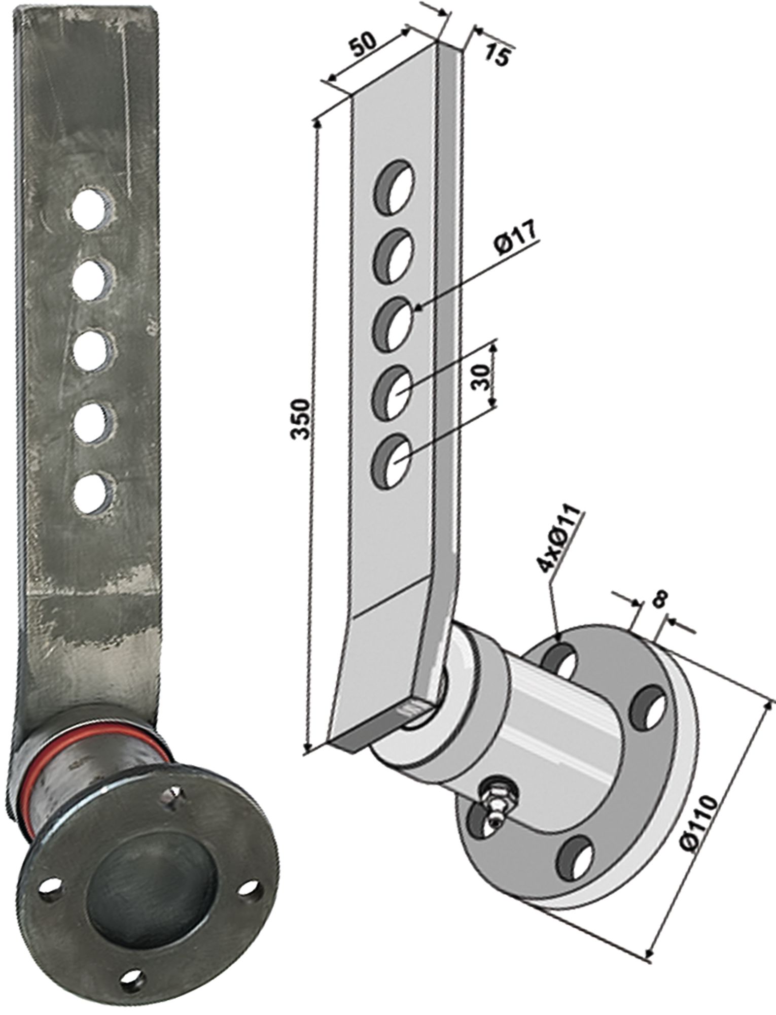 Industriehof Scheibenlager rechts, mit Stiel Nabe Ø außen 120 mm, Lochkreis 100 mm, 31-238819