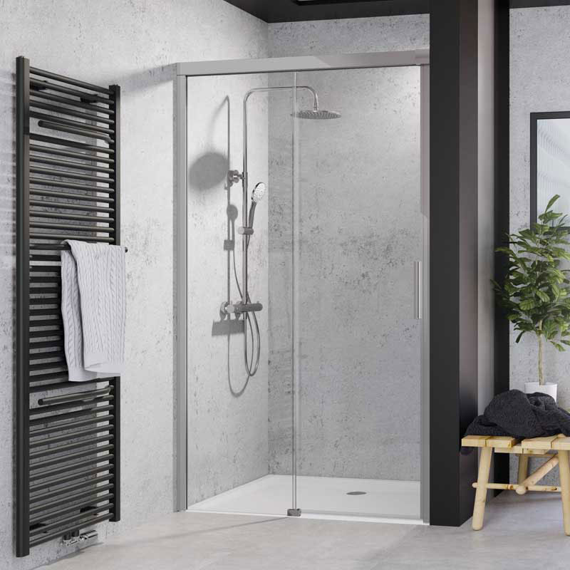 HSK teilgerahmte Schiebetür „Solida“ 140 × 200 cm Glas Carré, Profile Chromoptik (Alu Hochglanz poliert)