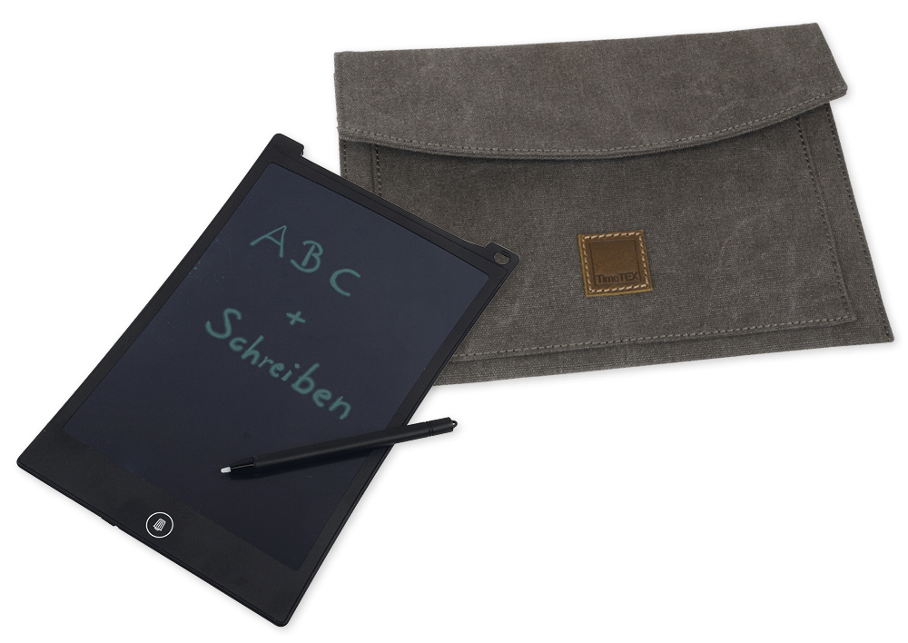 TimeTEX Digitale Schiefertafel SD "A4-XS", schwarzes Display, mit Canvas-Hülle