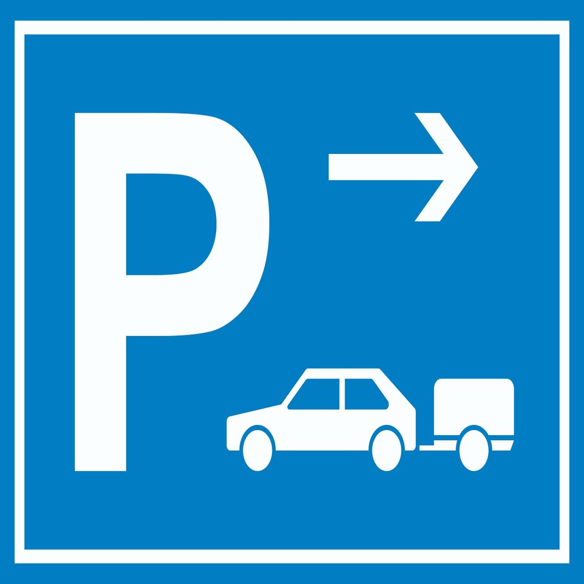 HB-Druck PKW mit Anhänger Parkplatz Schild mit Richtungspfeil rechts waagerecht A0 (841x1189mm)