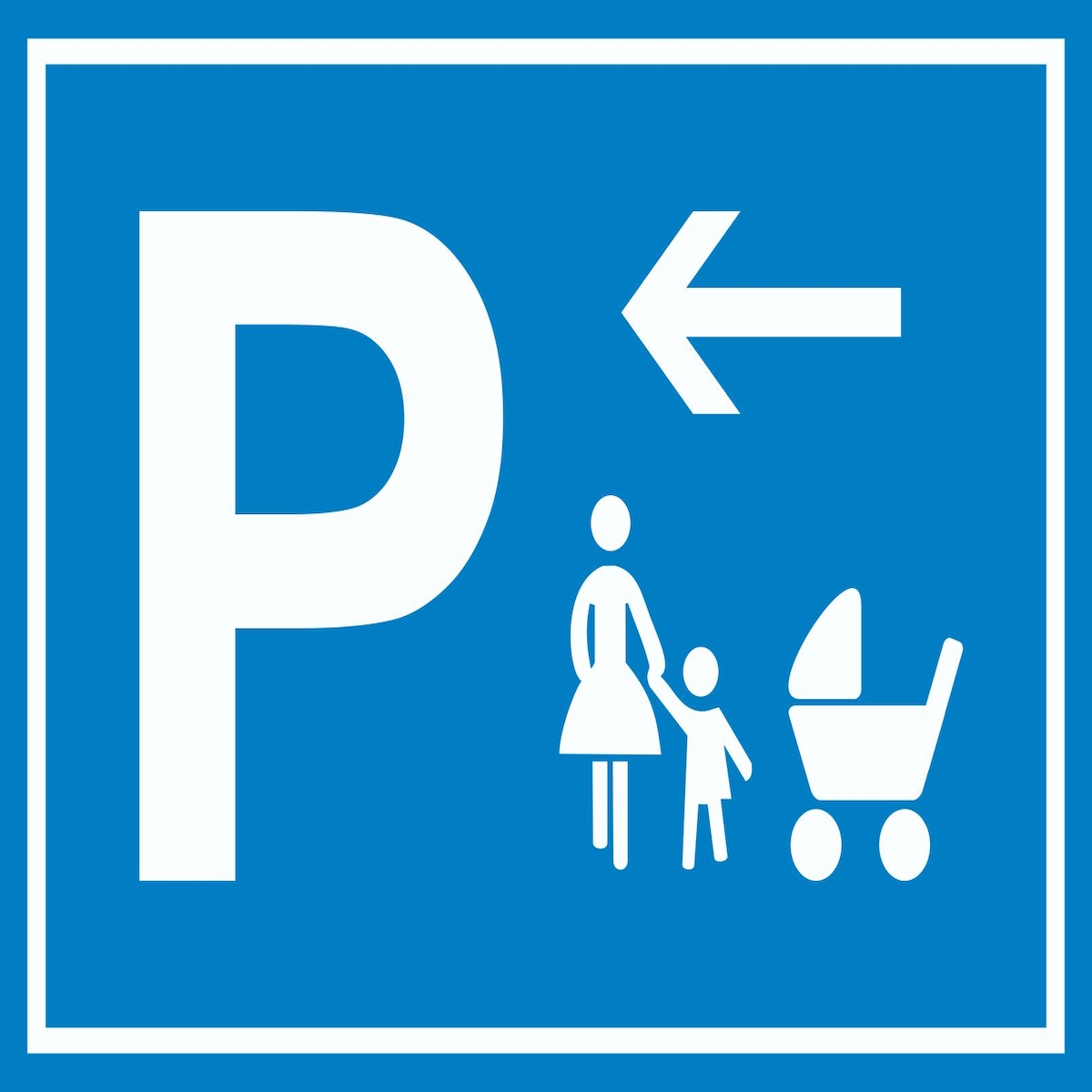 Kinderwagen Parkplatz links Schild A5 Rückseite selbstklebend