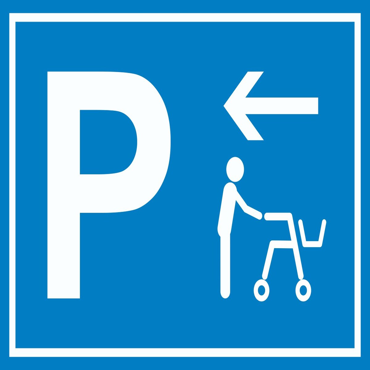 HB-Druck Rollator Gehwagen Parkplatz Schild mit Richtungspfeil links waagerecht A3 Rückseite selbstklebend