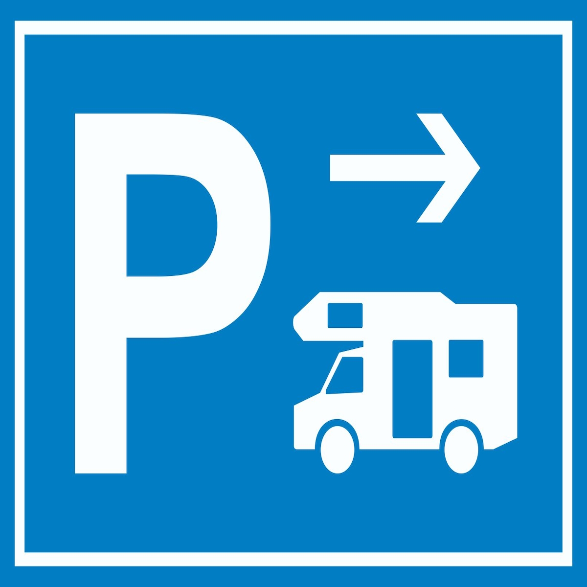 HB-Druck Wohnmobil Parkplatz Schild mit Richtungspfeil rechts waagerecht A2 Rückseite selbstklebend