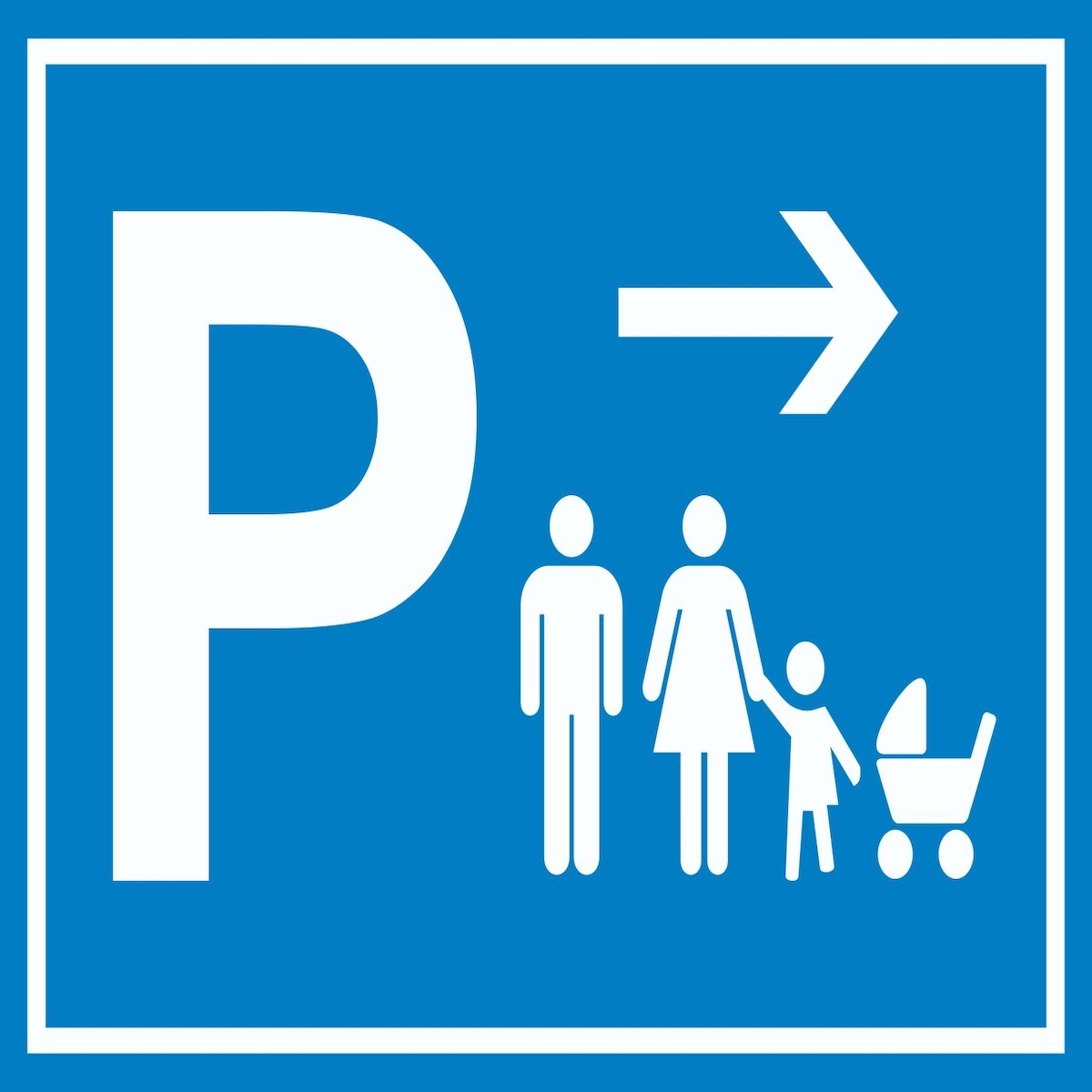 HB-Druck Mutter und Kind Parkplatz Schild mit Richtungspfeil rechts waagerecht A1 Rückseite selbstklebend