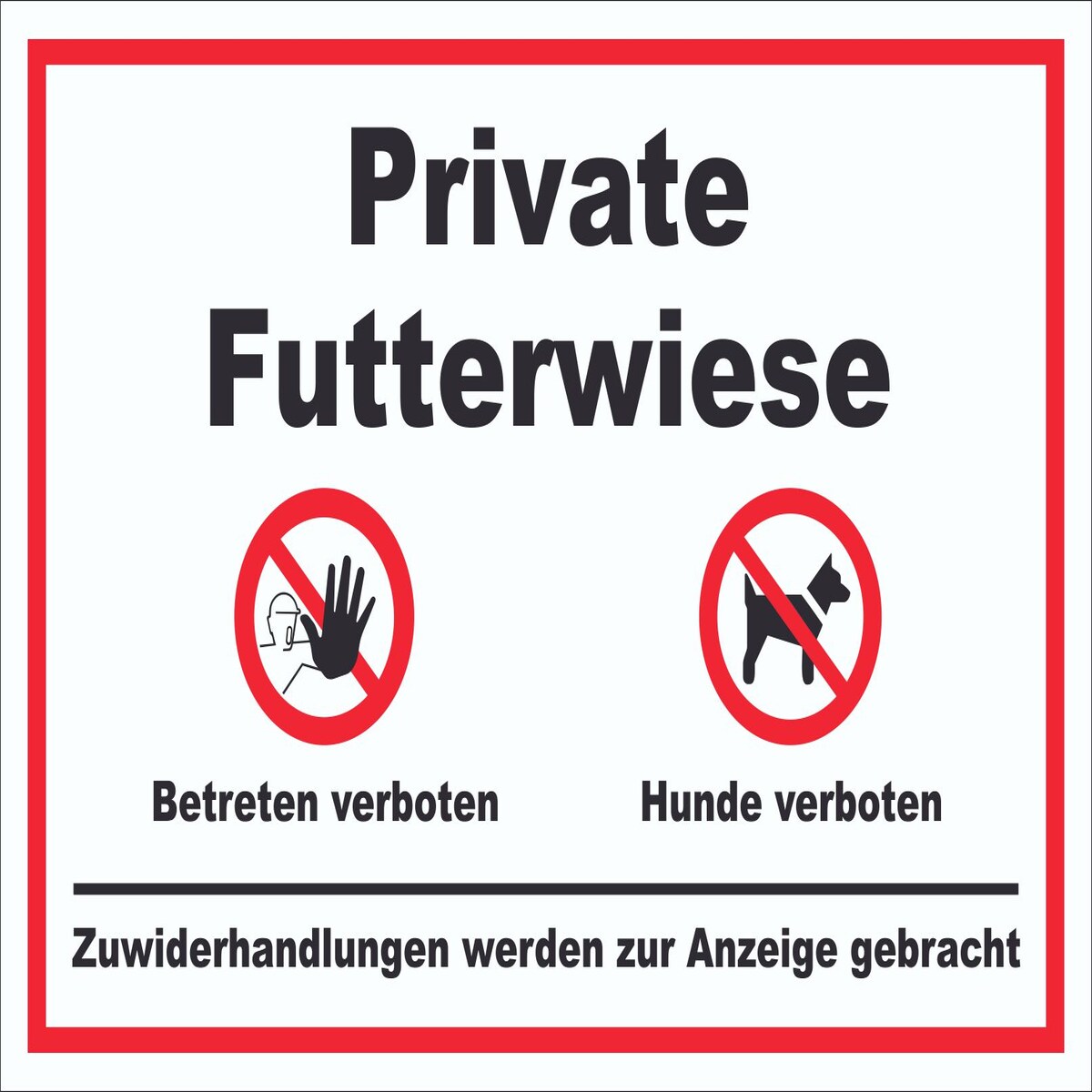 HB-Druck Private Futterwiese Betreten und Hunde verboten Schild A5 Rückseite selbstklebend