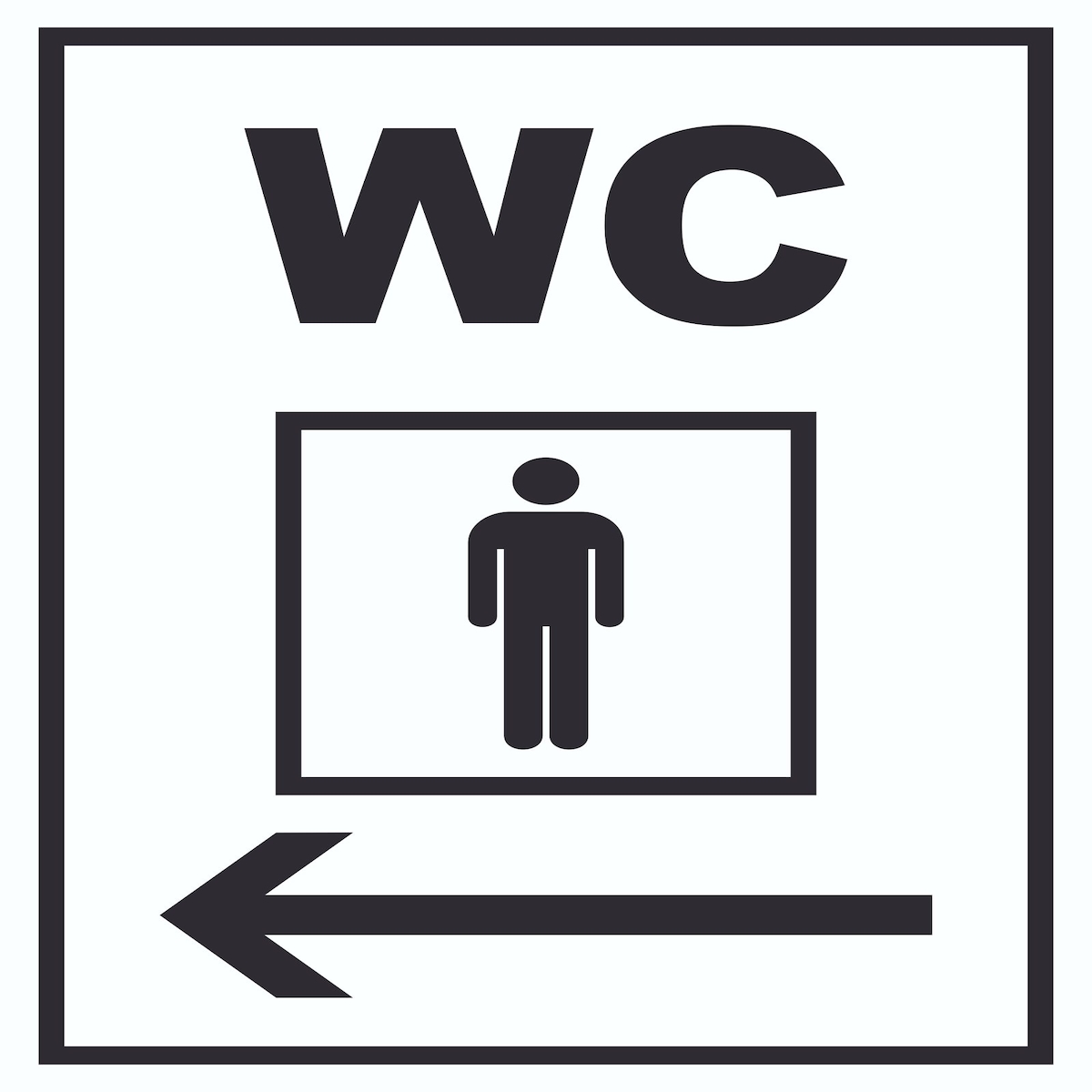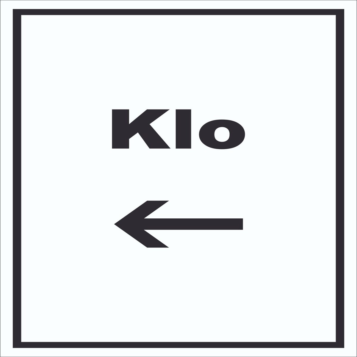 Klo Schild mit Text und Richtungspfeil links WC Toilette hochkant A1 Rückseite selbstklebend