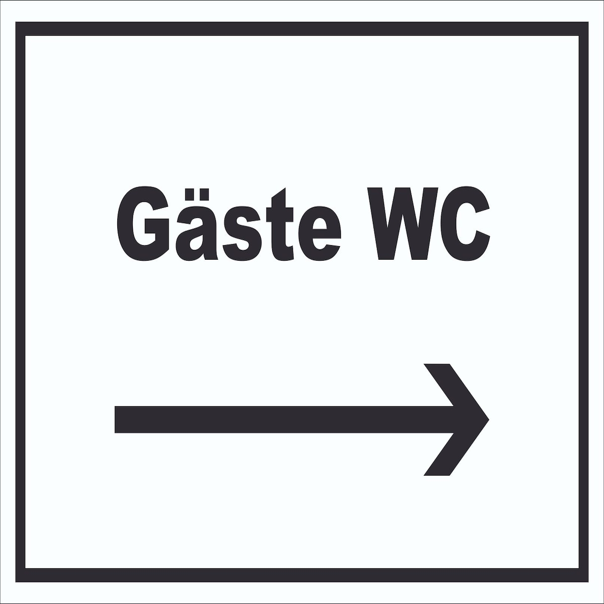 Gäste WC Schild mit Text und Richtungspfeil rechts Toilette waagerecht A3 Rückseite selbstklebend