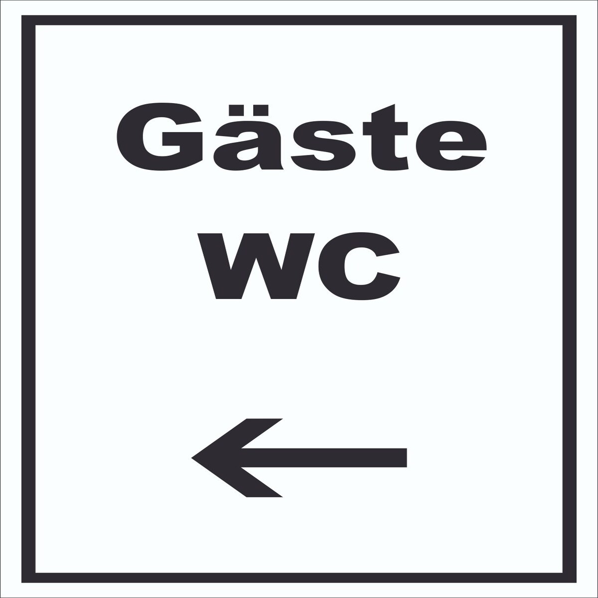 Gäste WC Schild mit Text und Richtungspfeil links Toilette waagerecht A4 Rückseite selbstklebend