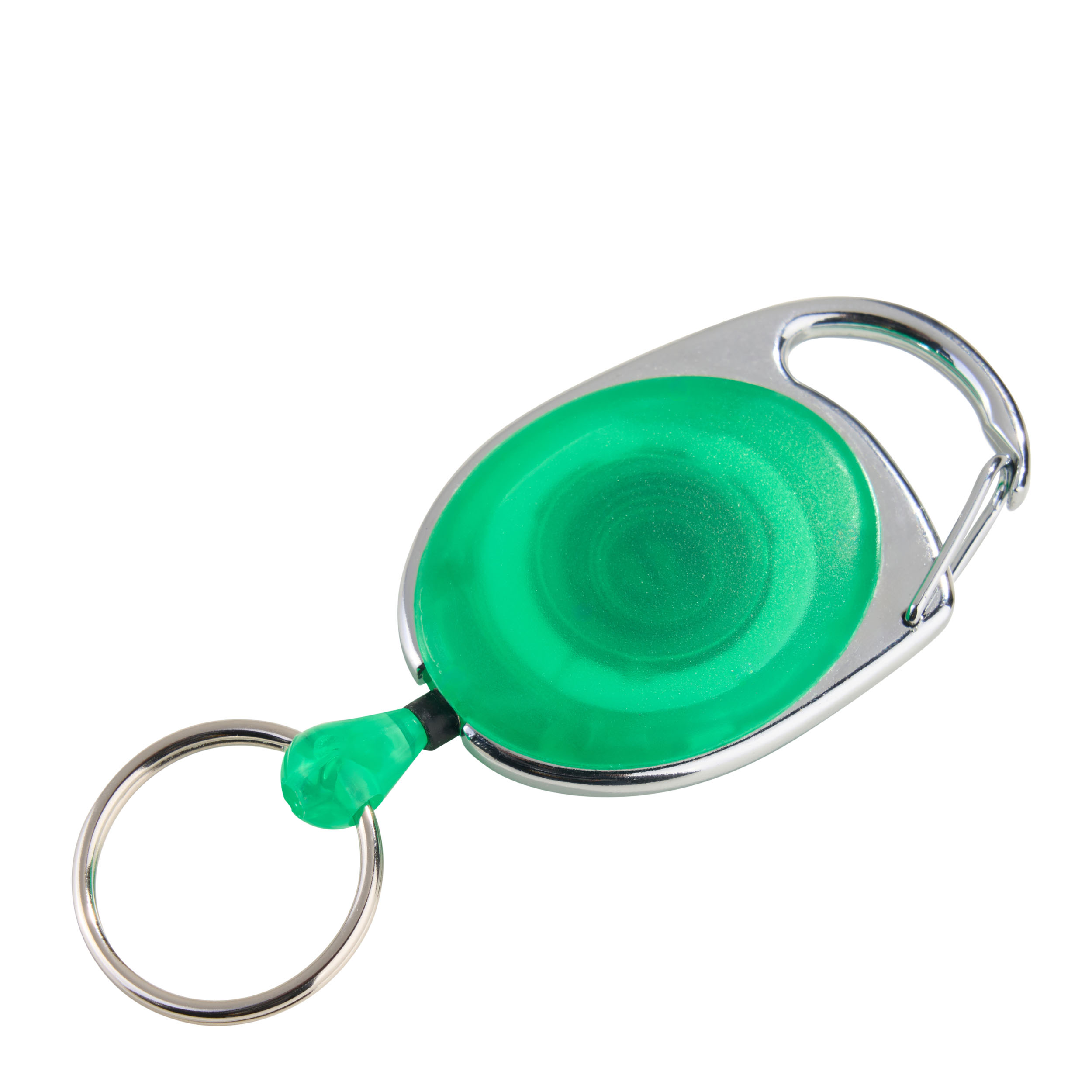 Ausziehbarer Schlüsselanhänger grün|transparent, ABS-Kunststoff|Metall