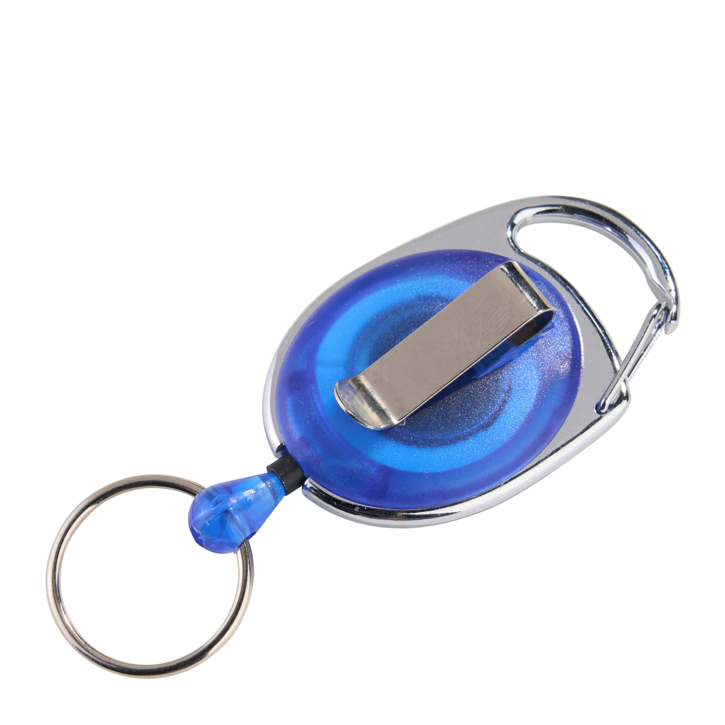 Ausziehbarer Schlüsselanhänger mit Clip blau|transparent, ABS-Kunststoff|Metall