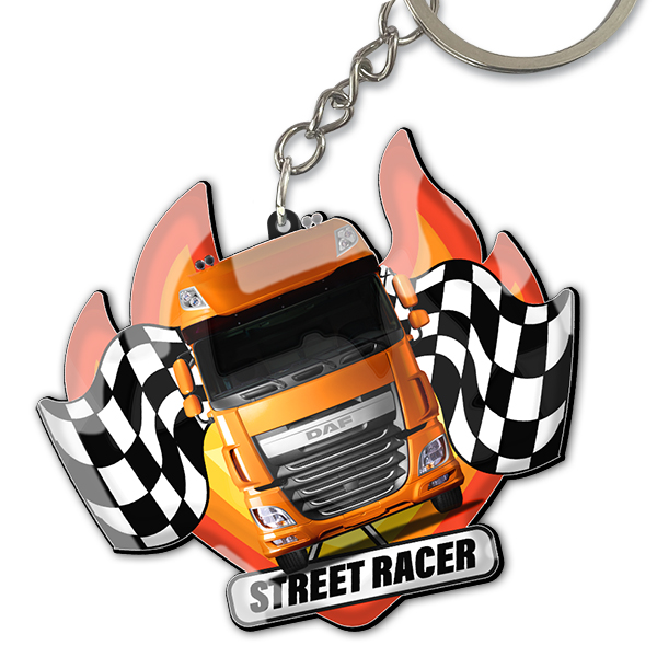 Individueller Schlüsselanhänger-Schild mit deinem LKW u. Kennzeichen in fire Design, XL, chrom