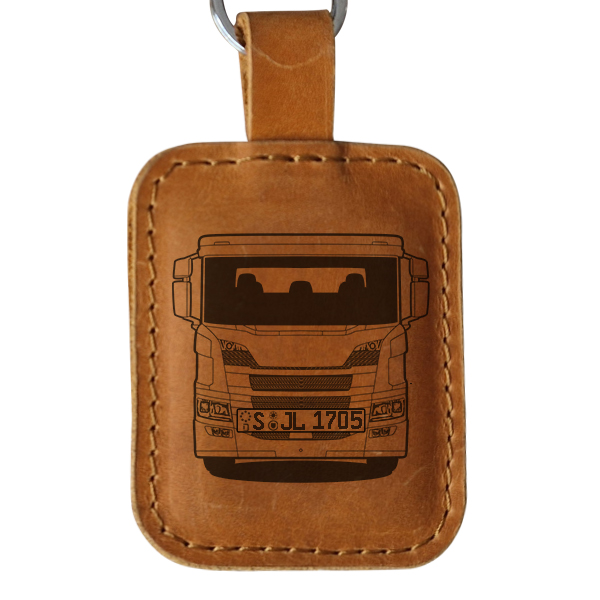 Individueller Schlüsselanhänger-Schild mit deinem LKW u. Kennzeichen in white-leather Design, M, chrom
