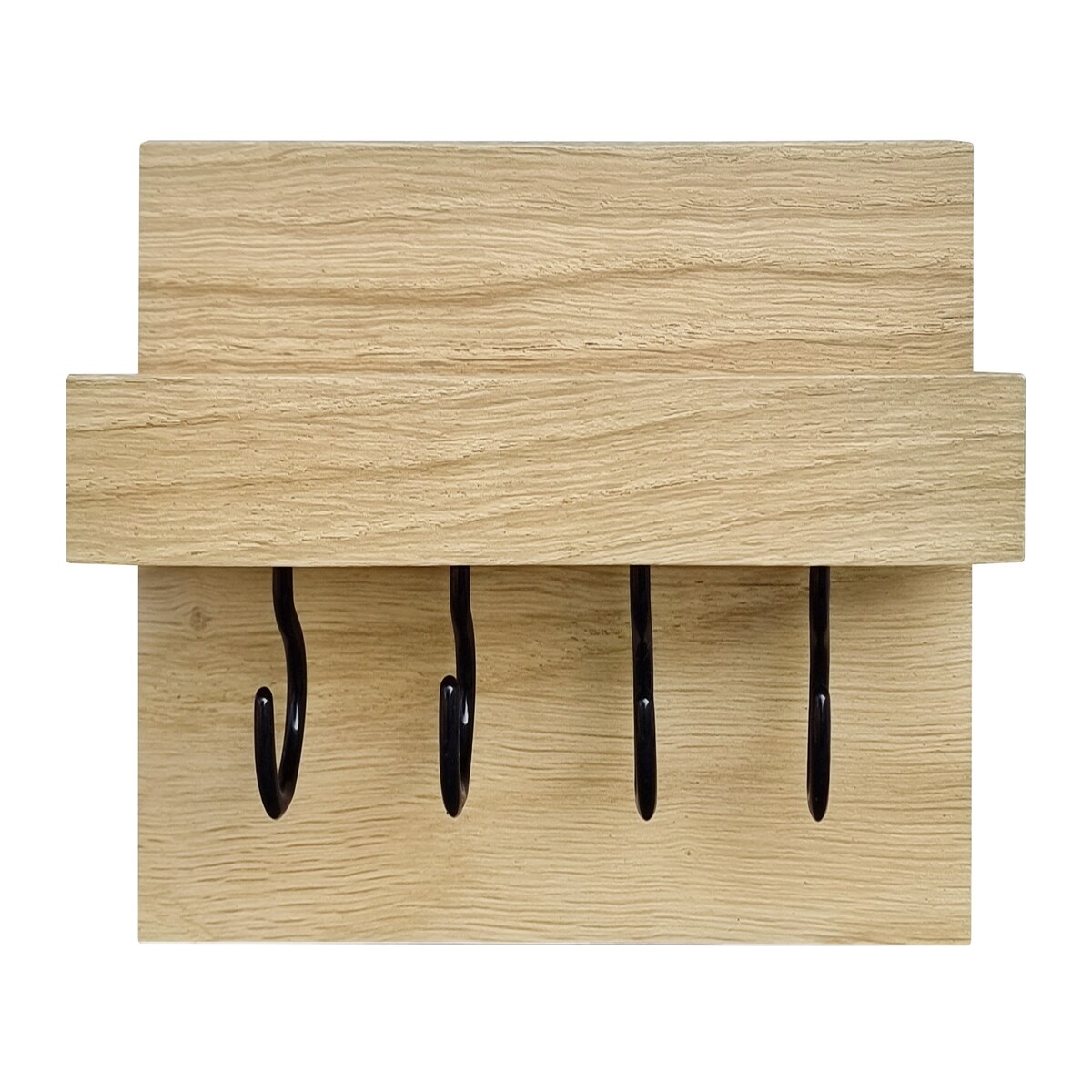 Erst-Holz Wandregal mit Haken Schlüsselbrett mit Ablage Eiche lackiert 20 u 30 cm V-40.12-11