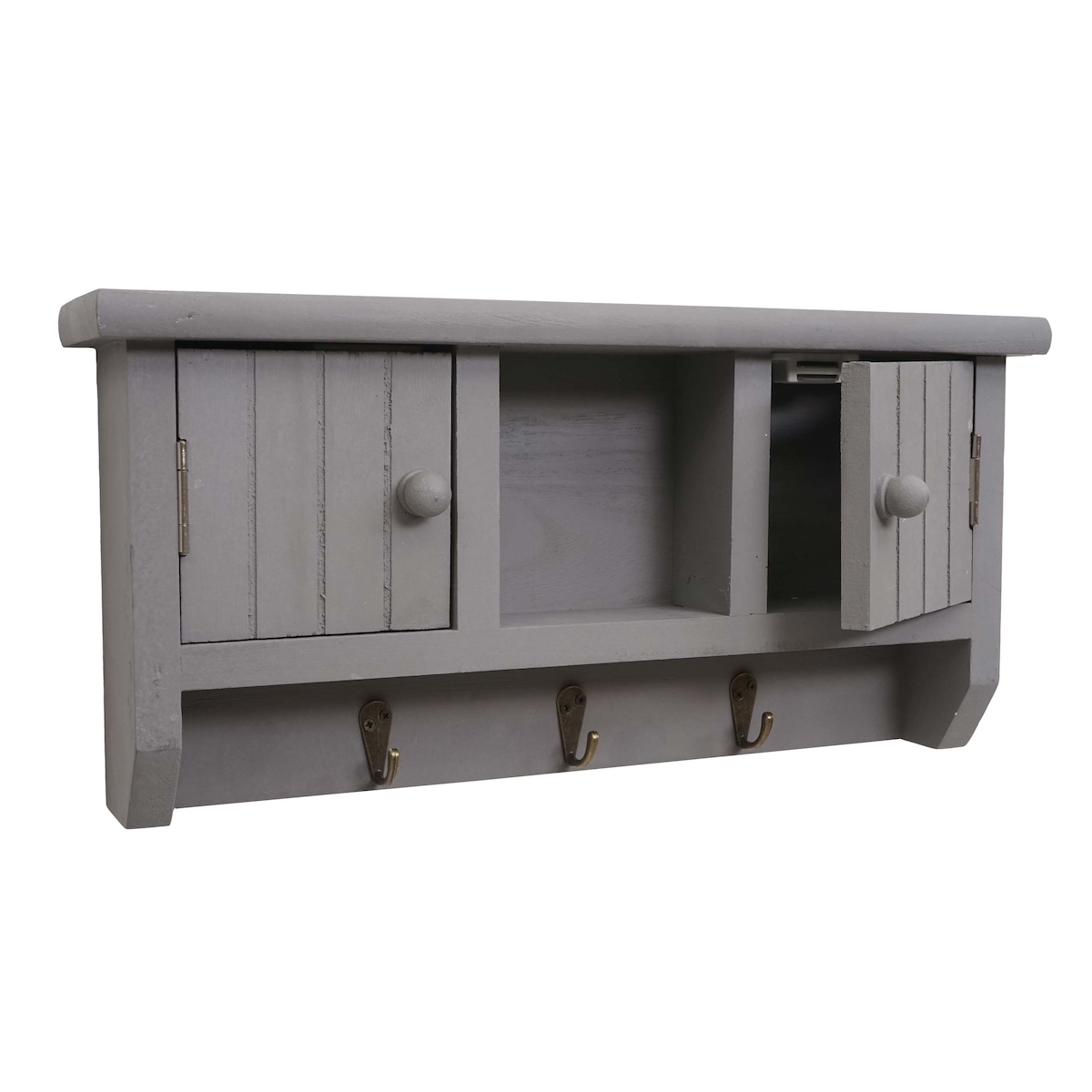 Schlüsselbrett HWC-A48, Schlüsselkasten Schlüsselboard mit Türen, Massiv-Holz MVG- shabby grau-weiß