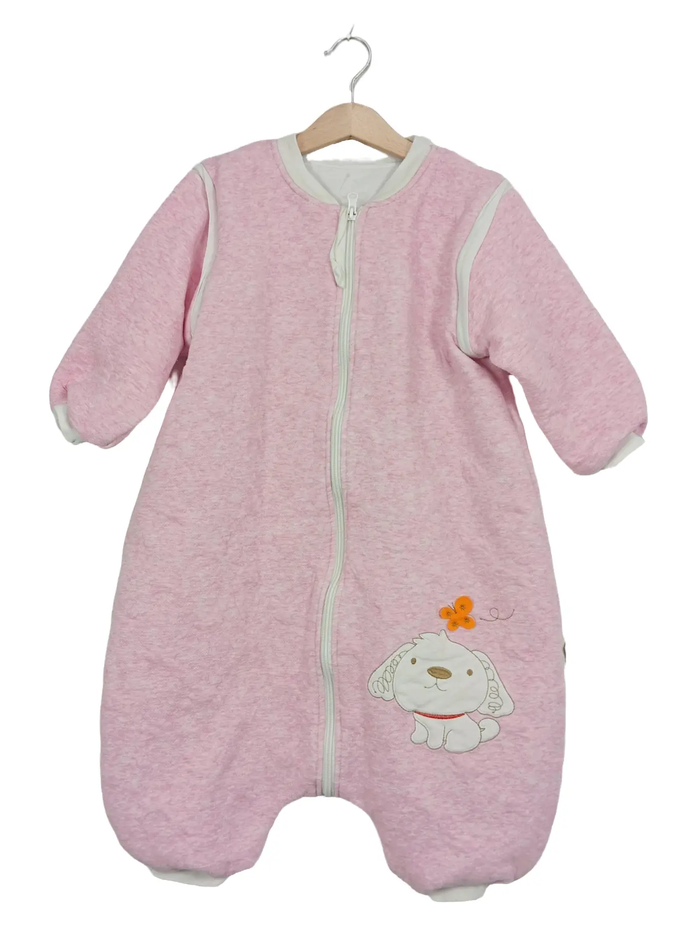 MIKAFEN Baby Schlafsack mit Ärmeln Hund Motiv Rosa Gr. 80 cm