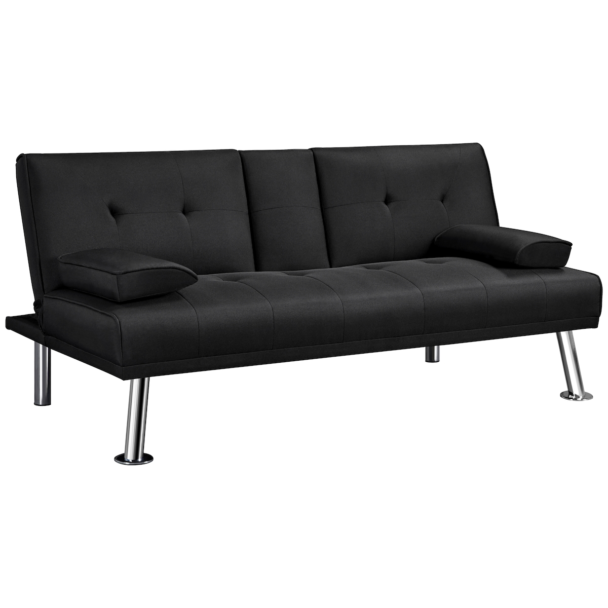 Happy Home 2-Sitzer Schlafsofa mit Ausziehfunktion Sofabett mit Getränkehaltern & Kissen Kunstleder Couch Schwarz