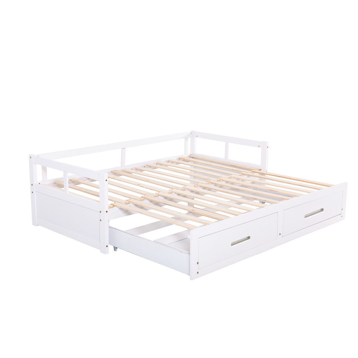 Merax Ausziehbares Schlafsofa 90/180*200 cm mit Schubladen und Lattenrosten, Kiefernbett mit Stauraum, weiß