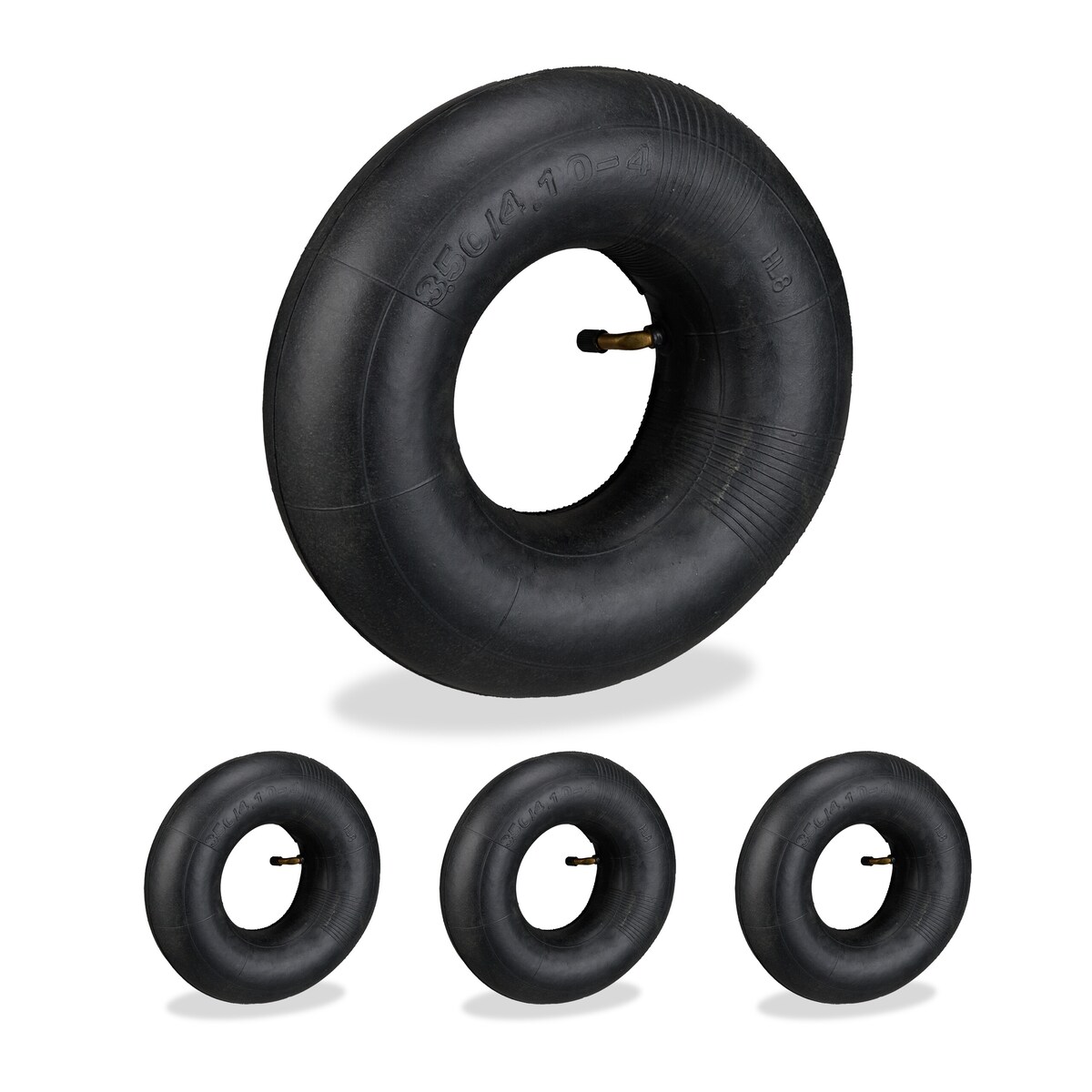 Relaxdays Schlauch 3.50-4, 4er Set, Ersatzschlauch, Schubkarre & Bollerwagen, Innenschlauch, Autoventil, Gummi, schwarz