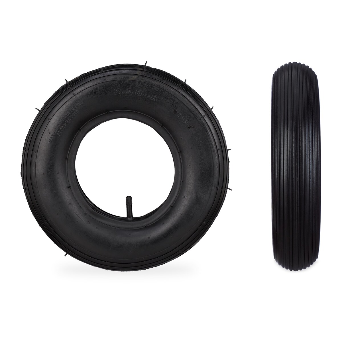 Relaxdays Schubkarrenrad mit Schlauch, 2er Set Ersatzreifen, 3.50-6", luftbereift, für Schubkarre, bis 136 kg, schwarz