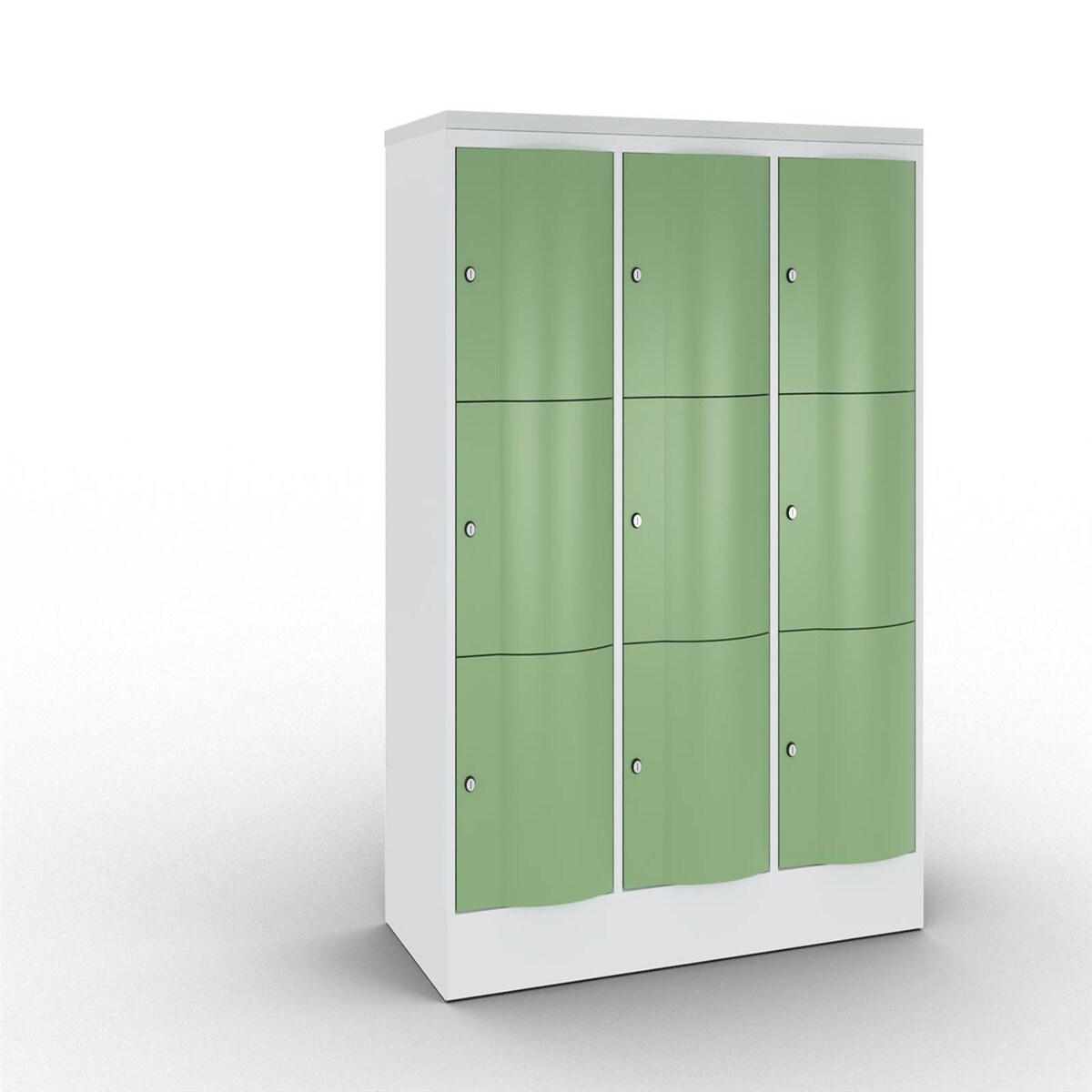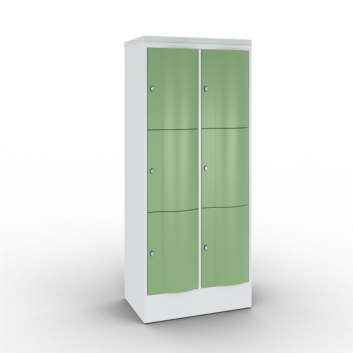 Schließfachschrank - Sichtfenstertüren - 6 Fächer a 400 mm - 1.187x800x500 mm (HxBxT) - Sockel - Zylinderschloss - resedagrün/reinweiß