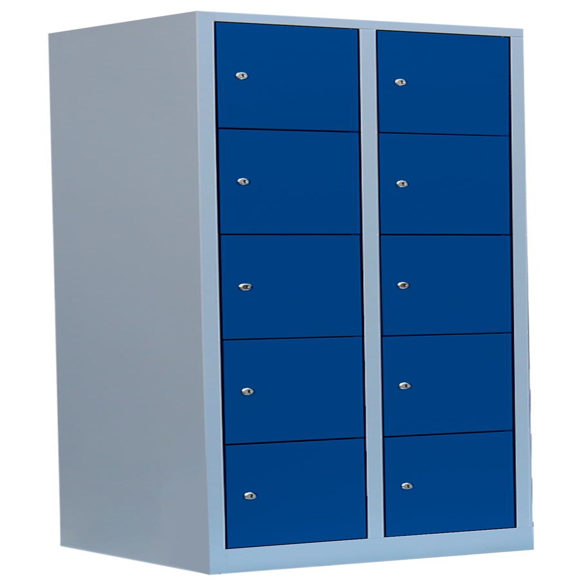 Schließfachschrank - 10 Fächer a 300 mm - 1.850x600x500 mm (HxBxT) - Füße - Zylinderschloss - lichtgrau/lichtblau