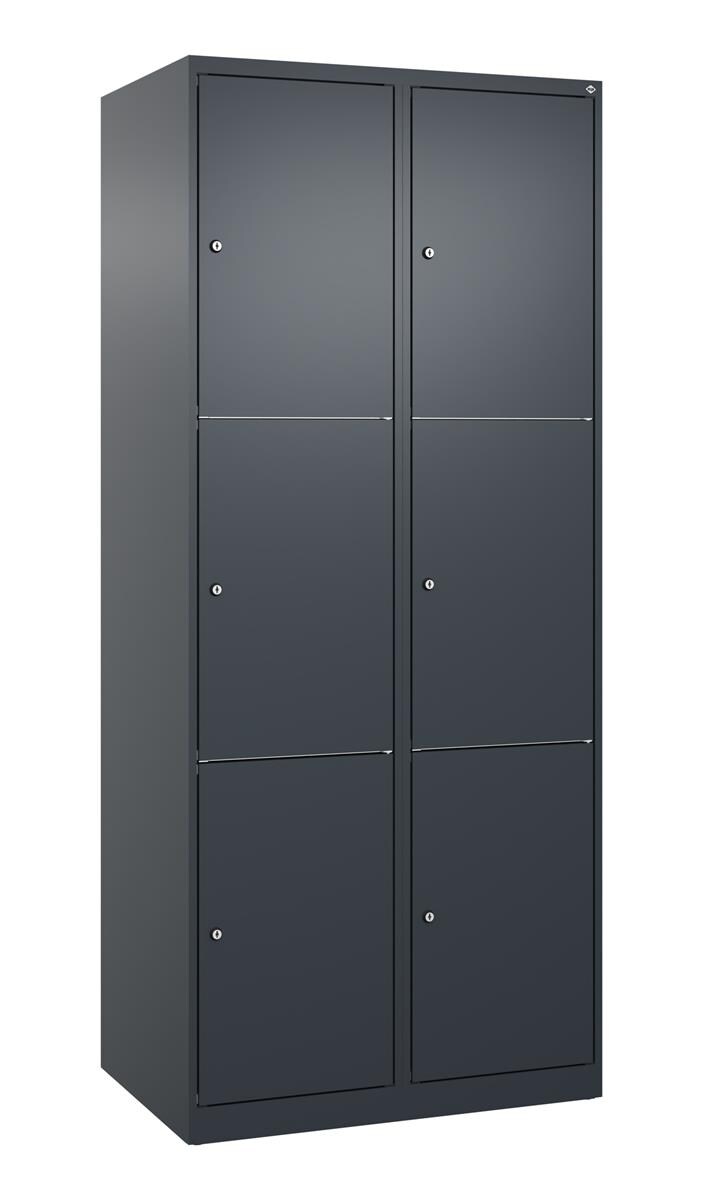 C+P Schließfachschrank Classic PLUS, Füße, 2 Abteile, 1950x800x500mm, 7016/7016 Innenhöhe Gefach oben (oberes 599 mm Front RAL 7016 Anthrazitgrau ; C