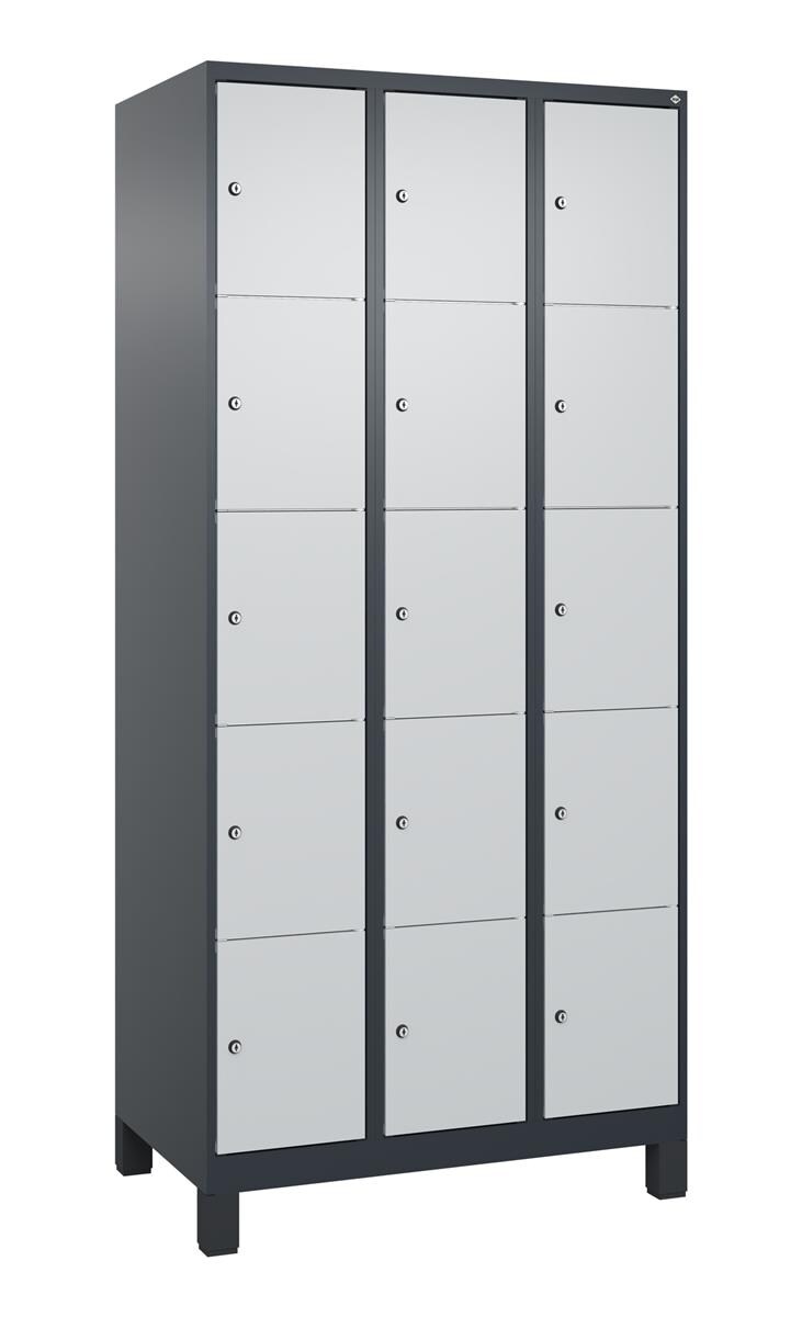 C+P Schließfachschrank Classic PLUS, Füße, 3 Abteile, 1950x900x500mm, 7016/7035