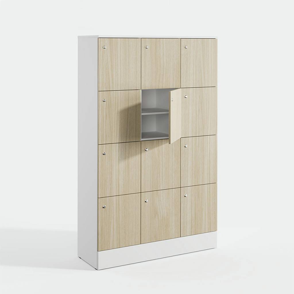 Schließfachschrank - Sichtfenstertüren - 12 Fächer a 400 mm - 1.187x1.600x500 mm (HxBxT) - Sockel - Zylinderschloss - lichtgrau/zinkgelb