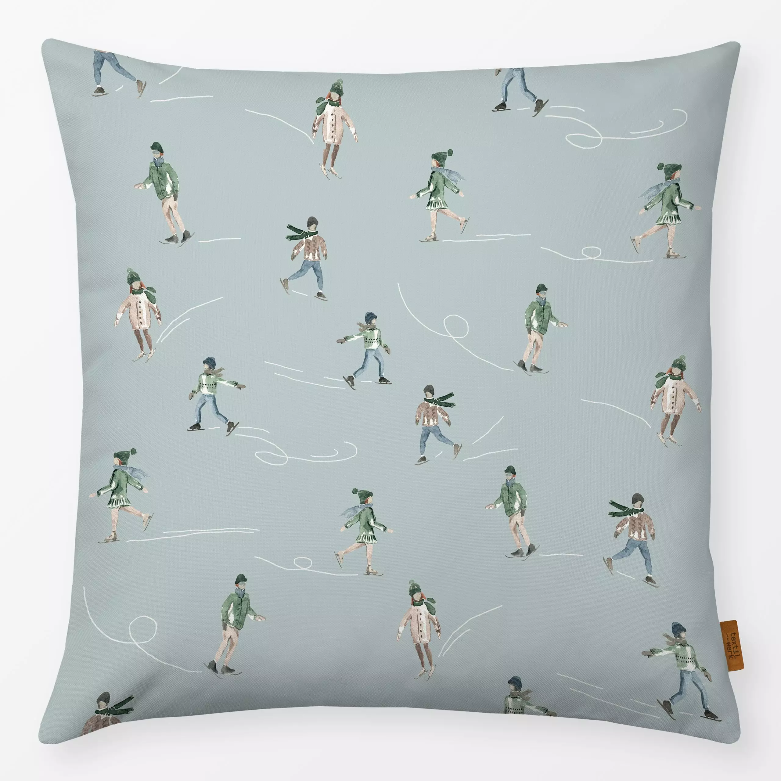 Kissen Schlittschuhläufer graublau - Sport - von „Katrin Graff"; Nebel, Eis, Schlittschuh, Skating, Weihnachten, Winter, lan...