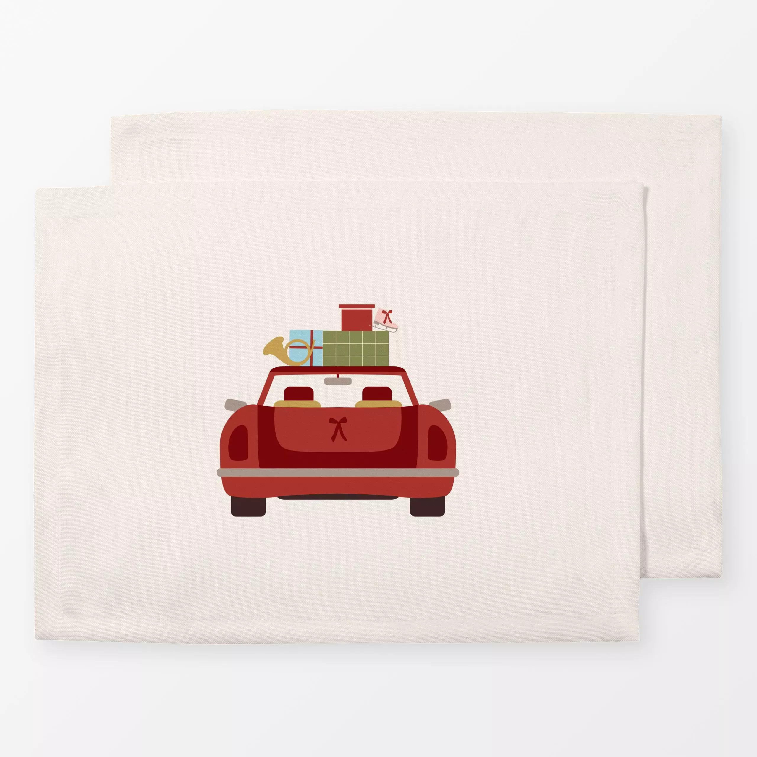 Tischset Coming home for Christmas - Weihnachten, Winter - von „Jana Moßmann"; Schlittschuh, Weihnachten, Auto, weihnachtlic...