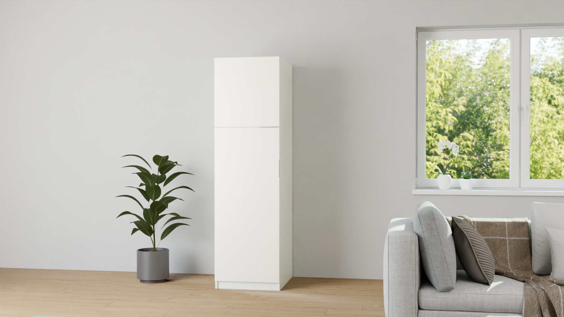 Schmaler 58 cm breiter Kleiderschrank mit 2 Türen | Farbe: Weiß