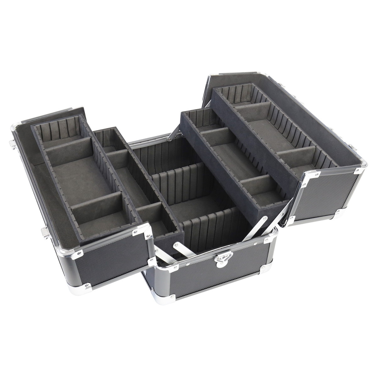 HMF Alu Kosmetikkoffer mit individuellen Trennwänden, Schminkkoffer leer, 33 x 22,5 x 24 cm, Schwarz
