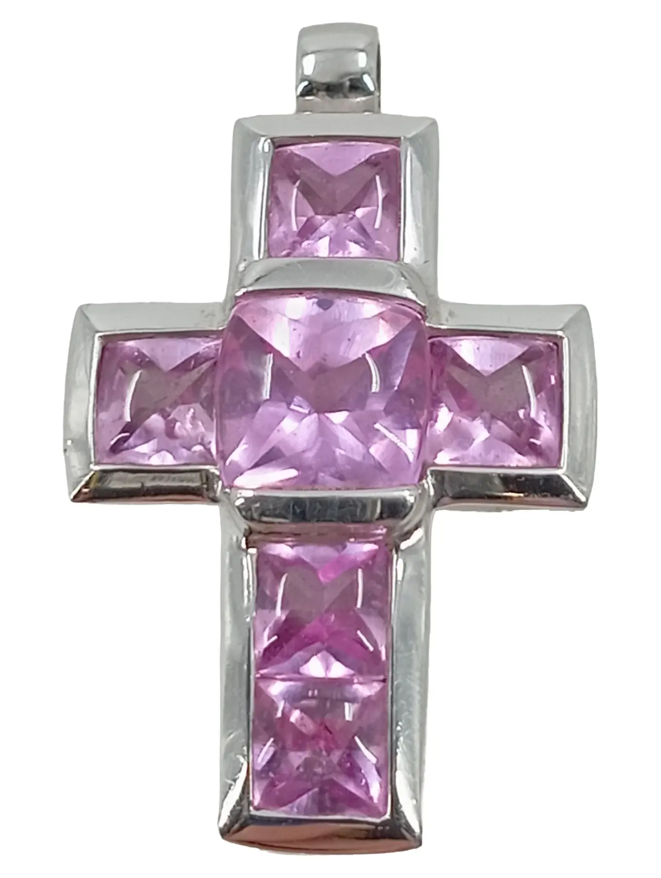 Golders Kreuz-Anhänger aus 585 Rotgold mit kleinem roten Herzchen, Gold Schmuck Damen
